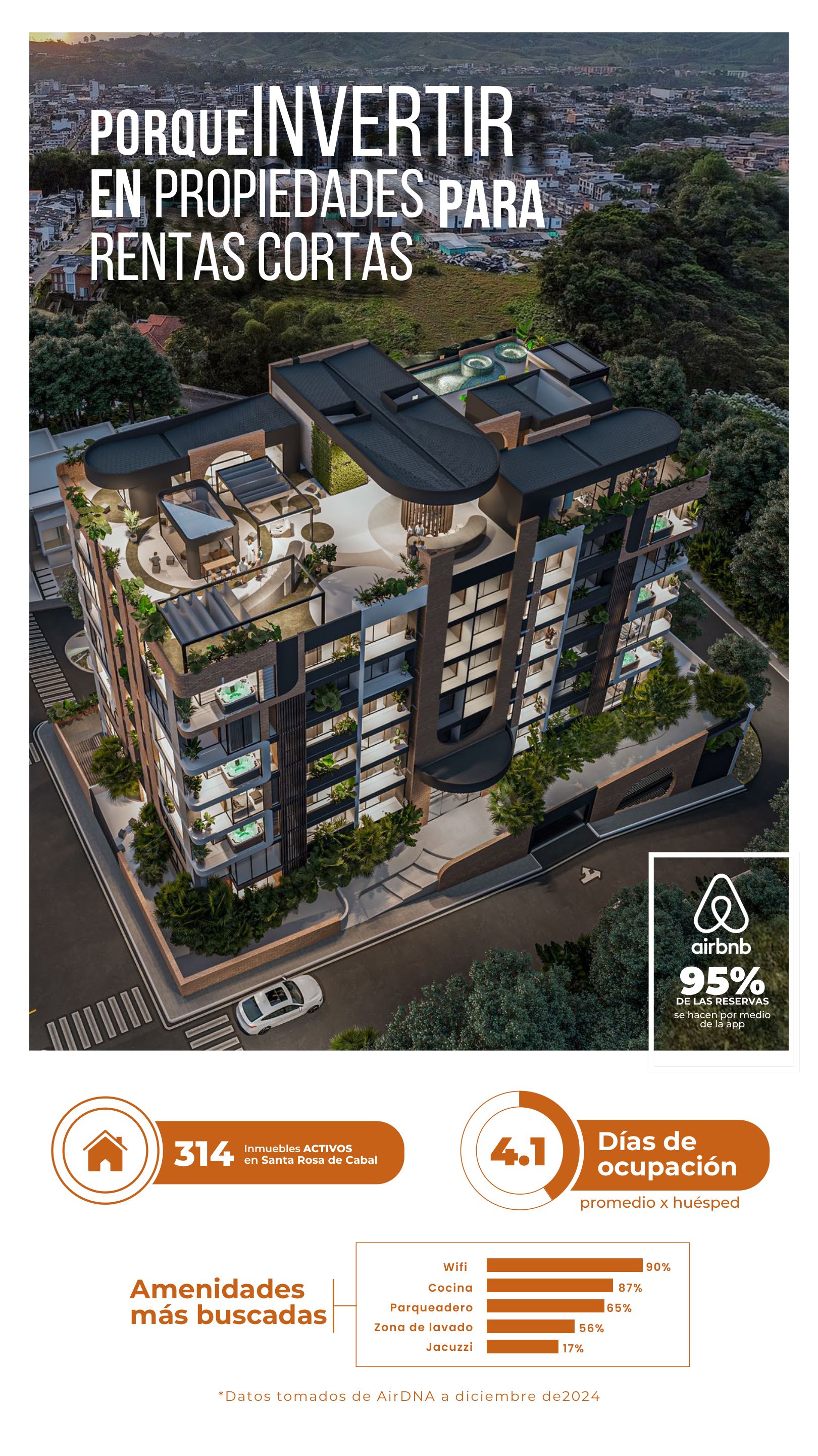 Cabal Aparta-Estudios es un proyecto innovador diseñado para transformar la inversión en Santa Rosa de Cabal, enfocado especialmente en el mercado de rentas cortas a través de plataformas como Airbnb. Ubicado a 1777 msnm, el proyecto combina un diseño funcional con una ubicación estratégica en una zona de alta demanda turística, ofreciendo una oportunidad de inversión con alto potencial de ocupación.