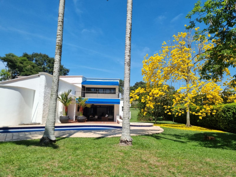Rentar Inmobiliaria ofrece casa campestre para la venta con un área de 840mts2, cuenta con 6 habitaciones, habitación del servicio con baño privado, 3 baños, cocina integral con gas natural, calentador, sala-comedor, estudio, closet, zonas de ropas, balcón, terraza, patio y pisos en cerámica, terraza con vista a la piscina, parqueadero para 3 carros cubiertos, 8 carros descubiertos . En condominio que ofrece zona de piscina, arboles frutales, gimnasio, cascada, portería vigilancia las 24 horas del día, parqueadero para visitantes, garajes, pozo de agua y kiosko. Zona residencial cerca a supermercados, restaurantes y parqueaderos. Contáctenos para que recibas información personalizada 300 912 16 00 - 334 42 40, síguenos en nuestras redes sociales rentarinmobiliaria.