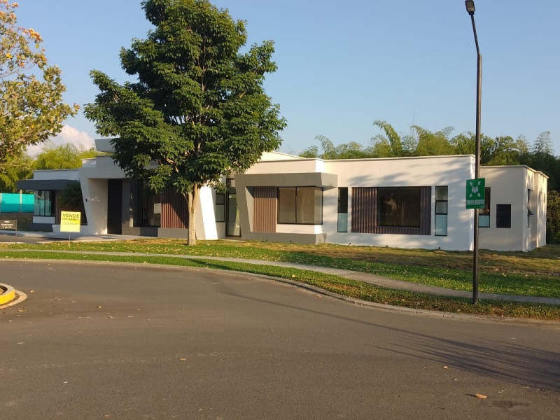 En exclusivo condominio en el sector de Cerritos, Pereira, Rentar Inmobiliaria ofrece casa campestre para estrenar en venta, full acabados con estilo contemporáneo, con área de lote 2.860 mts2, construidos 520 mts2, cuenta con 4 habitaciones, 3 closets, habitación de servicio con baño privado, 3 baños completos 1 social, cocina integral, barra estilo americano, calentador, aire acondicionado, sala interior y exterior, área BBQ, salón familiar, estudio, zona de ropas, terraza, patio, jacuzzi, pisos laminados, porcelanato y parqueadero para 3 autos-posibilidades de ampliación a 5 autos . Contáctanos para que recibas información personalizada 300 912 16 00 - 334 42 40, síguenos en nuestras redes sociales rentarinmobiliaria.