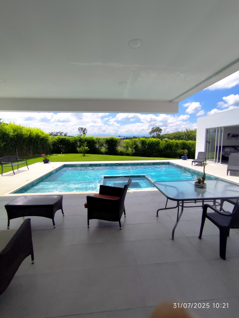 ¡La oportunidad de tu vida está aquí y no puedes dejarla pasar! Rentar Inmobiliaria tiene para ti una espectacular casa campestre en venta en el exclusivo sector de Cerritos, Pereira, con un área de 400 m² y un valor de $1.600.000.000, ideal para quienes sueñan con vivir rodeados de naturaleza, confort y privacidad. Esta propiedad de un solo piso ofrece todo lo que necesitas: 3 habitaciones, 3 baños, cocina integral, gas natural, calentador, zona de ropas, terraza, patio, pisos en porcelanato, jardines, amplias zonas verdes y piscina, perfecta para disfrutar en familia. Además, cuenta con vigilancia 24/7 que te brinda total tranquilidad. Ubicada estratégicamente cerca de supermercados, estaciones de gasolina, restaurantes, parqueaderos, centros comerciales, universidades, colegios y transporte público, lo que la convierte en una inversión única. ¡Contáctanos ahora mismo al 300 912 16 00 – 334 42 40 y agenda tu cita personalizada! Síguenos en nuestras redes sociales como @rentarinmobiliaria y descubre más propiedades exclusivas. ¡Haz realidad tu sueño campestre con Rentar!