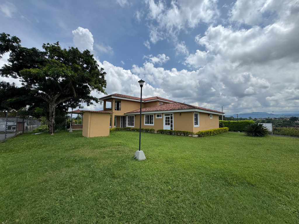 Renta Inmobiliaria tiene para ti una espectacular casa campestre en la ciudad de Pereira, ubicada en exclusivo condominio y con un valor único de $1.950.000.000. Un lugar ideal para quienes buscan amplitud, comodidad y contacto con la naturaleza, gracias a su generoso lote de 2.300 m² y sus 400 m² construidos en dos niveles, diseñados para disfrutar en familia. La propiedad ofrece una distribución funcional con 7 habitaciones, 5 baños, sala comedor, cocina con barra estilo americano, chimenea, zona de ropas, balcón y patio, además de múltiples comodidades como energía trifásica, alarma y gas natural. Su entorno campestre se complementa con jardines, zonas verdes, árboles frutales y área BBQ, perfecto para reuniones sociales y momentos de descanso. El condominio cuenta con parqueaderos, bahías de visitantes, garajes y cerca eléctrica que garantizan tranquilidad y seguridad. Una propiedad con vista panorámica y excelente ubicación, rodeada de supermercados, restaurantes, estaciones de servicio, centros comerciales, universidades y colegios, con acceso vial pavimentado. ¡Una oportunidad única para vivir o invertir en uno de los sectores más apetecidos de Pereira! Agenda tu cita hoy mismo al 300 912 16 00 – 334 42 40 y síguenos en redes sociales para conocer más opciones.