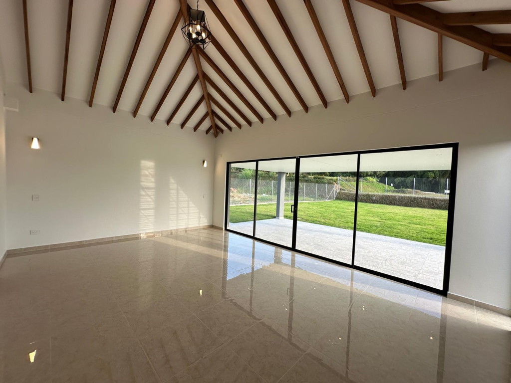 ¡Hermosa casa campestre para estrenar! Ubicada en una zona residencial y campestre, ideal para disfrutar de la tranquilidad y el confort que mereces, un solo piso, cuenta con 3 habitaciones, 3 baños, sala-comedor, cocina, zona de ropas, terraza, estudio, balcón, calentador, piso en porcelanato y una amplia área construida de 300 m² sobre un lote de 1.550 m². Además, dispone de 2 parqueaderos, amplias zonas verdes, portería y vigilancia 24/7. Con fácil acceso a transporte público, supermercados, restaurantes y colegios. ¡Un lugar perfecto para vivir rodeado de naturaleza y confort! Contáctanos ya al 300 912 16 00 – 334 42 40 Síguenos en redes sociales y descubre más opciones pensadas especialmente para ti. Rentar Inmobiliaria – Tu mejor opción en finca raíz.