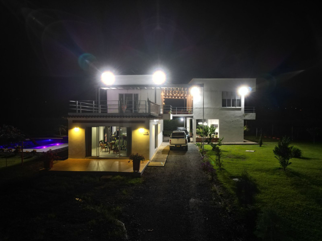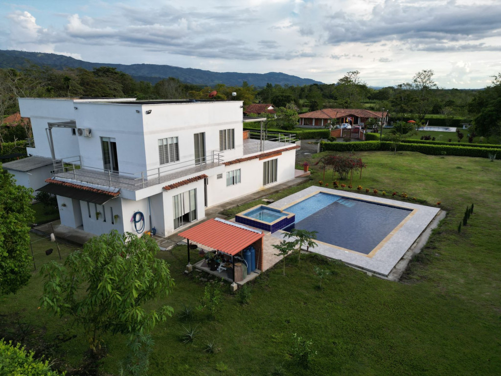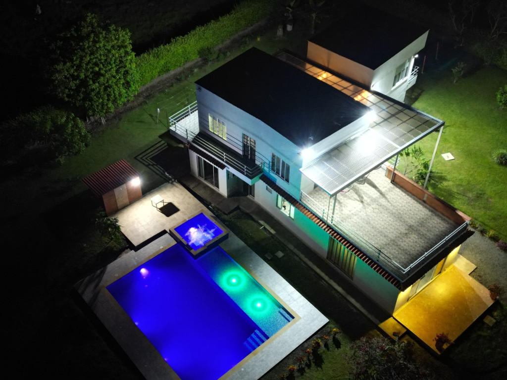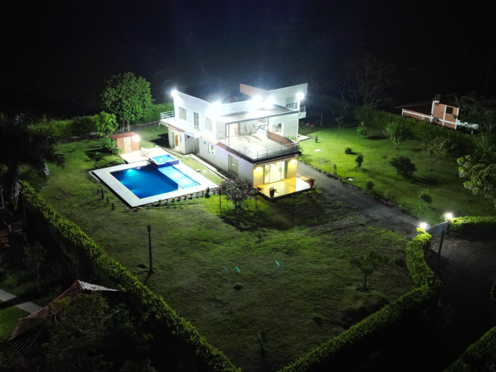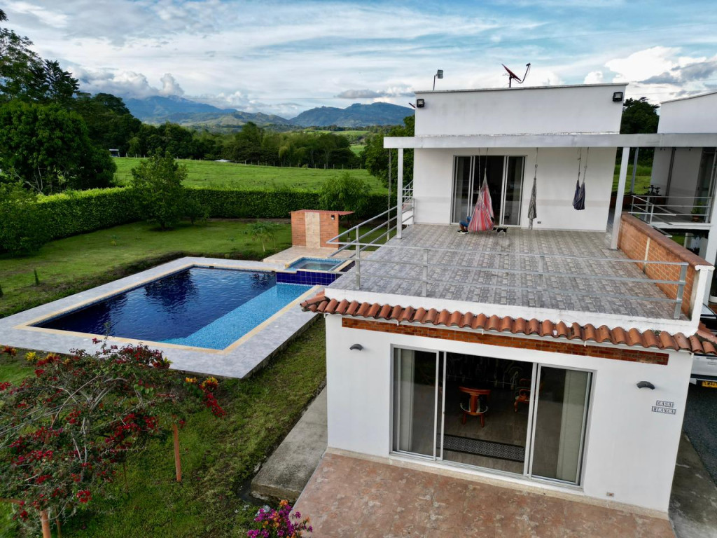 Rentar Inmobiliaria ofrece en venta hermosa casa campestre dúplex en exclusivo condominio, ubicada a tan solo 4 minutos del centro del municipio. Cuenta con un lote de 3.000 m² y 400 m² construidos, distribuidos en 4 habitaciones, 4 baños más baño social. En el primer piso encontrarás 2 habitaciones con aire acondicionado, amplia sala comedor y estudio. Dispone de cocina principal y cocina auxiliar, lavandería, cuarto de herramientas, gas propano y calentador. En su zona exterior podrás disfrutar de piscina ecológica con clorinador de sal, jacuzzi para 12 personas, kiosko, zona BBQ, balcones, terraza, amplios jardines y zonas verdes, todo con un entorno seguro y paisaje 360°. El condominio cuenta con vigilancia de 5:00 a. m. a 2:00 a. m., brindando tranquilidad y seguridad. Ubicada en zona campestre con vías de fácil acceso, ideal para quienes buscan exclusividad y contacto con la naturaleza cerca de la zona urbana. Contáctanos al 310 313 0888– 334 42 40 Síguenos en redes sociales y descubre más opciones pensadas especialmente para ti. Rentar Inmobiliaria – Tu mejor opción en finca raíz.